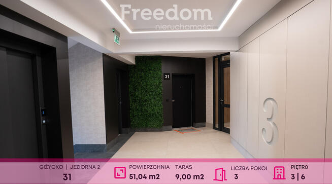 6APARTAMENT - przestrzeń, która zachwyca Adres: ul. Jeziornej 2/11 w Giżycku Widok na park Powierzchnia: 51,28 ...